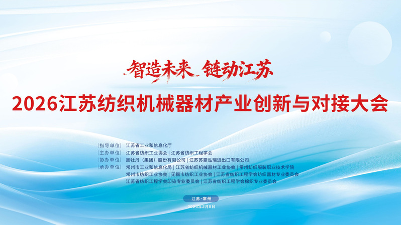 2026年2月8日,“智造未来链动江苏”—2026江苏纺织机械器材产业创新与对接大会在我校成功举办。本次会议由江苏省工信厅指导,省纺织工业协会和省纺织工程学会联合主办,常州纺织服装职业技术学院等单位承办。来自全省纺织产业链企业以及金融机构代表共百余人参会。江苏省纺织工程学会理事长周洪溶、江苏省纺织工业协会副会长张发松、江苏省工信厅消费品工业处处长刘华,我校党委书记林刚,党委副书记、院长洪霄,党委委员、副院长张文明等领导参加活动。大会以推动纺织机械器材产业链协同创新和高质量发展为目标,汇聚政府部门、行业协会、科研院所、金融机构及产业链上下游重点企业代表,共商产业发展新路径。