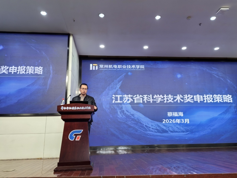 为了增强我校科研能力,帮助老师成功申报江苏省科学技术奖。2026年3月11日我校邀请常州机电职业技术学院科技处处长蔡福海为广大教师作江苏省科学技术奖申报培训。蔡福海主要从以下四方面进行解读培训。